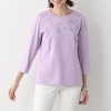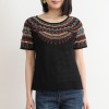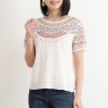 ネックラインなどにほどこされたステッチや刺しゅうがアクセントになった、フォークロア感あふれる一着。