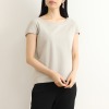 肌触りが良く落ち感のあるレーヨン素材を使用。袖に切り替えを入れてアクセントをつけた着心地の良い一着。