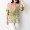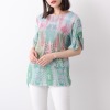 オパール加工をほどこしたメッシュ素材とプリント生地を重ね、奥行きのある柄を表現したおしゃれな一枚。