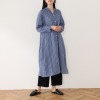 ストライプ柄のチュニックとニットカーディガンのアンサンブル。ニットは前後どちらでも着用可能です。