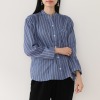 ヴィンテージ感のあるストライプ生地を用い、後ろ身頃に花柄プリーツ素材を切り替えた、個性的なデザイン。