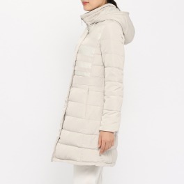 - スタイル・ラヴィー タフタ ウール調プリント切替 フード付ダウンコート