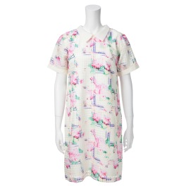 - ドールアップウップス チェックジャガード フラワープリントデザイン シャツカラーワンピース