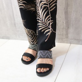 - アルファキュービック ラインストーンアクセント ウェッジヒールサンダル