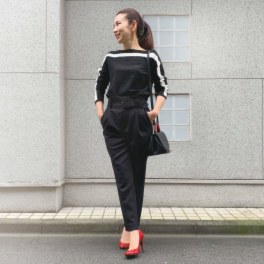 ストンとしたシルエットで細見えします。生地も薄手ですがコート下にはちょうど良い厚さです。