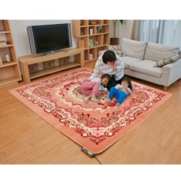 ホットカーペットなんて全然買うつもりではなかったのに、たまたま見つけたこの色と柄に惹かれてしまいました。リビングは床暖房なので、北側の方の部屋か隣の和室に使えばいいかなと思いましたが、実際とってもかわいくて、しっとりと気持ちいいのでリビングに敷きました。私好みのお花の模様で本当に可愛いらしくて素敵です。6時間で自動オフしてくれるのも便利ですよね。孫が遊びに来てもこの上でぬくぬくコロコロしています。