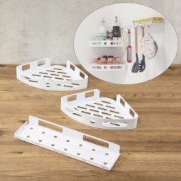 これまではショップさんで購入したステンレスのこの字型の台を上下上ジョイントさせて、2つ並べて(合計4つ購入)使用していました。コンロとガラス壁の間においていたため、コンロを使用した時に蒸気が換気扇をめがけて上に上がる際にどうしてもそこに置いている調味料に熱風が当たって気になっていました。この商品を右壁に取り付けると、その熱風がかからず、すっきりしました。壁に穴をあけることもなく、それでいてしっかり固定できています。良い商品だと思います。