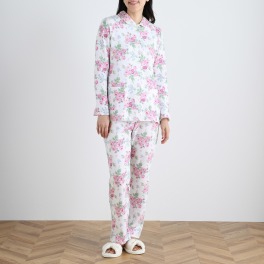 このパジャマはデザインはパジャマの王道のシンプルなものですが、そのシンプルさが良く、柄で柔らかさとエレガントさが表現されており心が和みます。