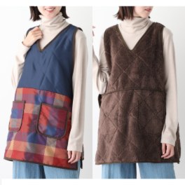 温かいのかもしれませんが、肩がきゅうくつで、防水でもない?ので、エプロンにも外着にもならず中途半端。のわりにお値段がよく、一度着用したので返品もできず、失敗でした。