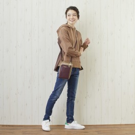 外せるカード入れがとても便利でスッと出せます。スマホ、ハンカチ、ティッシュ、薄い小銭入れ、メガネ、ペンを入れてます。ネイビーとモカの配色がユニセックスで良いです。