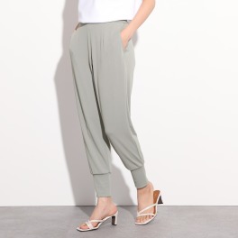 生地のとろみ具合や、お尻や太ももからの幅が、余裕があるのに細く見えます。ウエストが少し緩い感じですが、いろいろ合わせやすそうです。薄色も買えばよかったかな…。