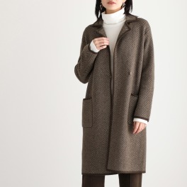 程よい肉厚のコートで身体に沿いとても良いです。襟の大きさも大きすぎず小さすぎず絶妙です。確かに良い物を着ているという感じです。流行のないヘリンボーン柄は上品です。特に見頃の柄とポケットの柄が合っているのは流石です。大変気に入りました。永く愛用させていただきます。次回も楽しみにしております。