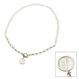 コインのアクセサリーは珍しので、しかもアシンメトリーのデザインが面白くて購入しました。先日は、付けていたらゴージャス!と言われました。ただセーターに合わせて着けていたのですが、淡水パールの華やかさと、チェーンの両方が組み合わさったデザインですので、色々なカジュアル、装いと幅があると思います。日常使いで、気分も上々になれます。アクセサリーのお買い物は、久し振りでした。