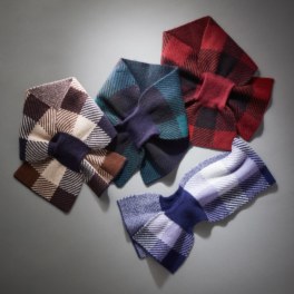首に巻いてホールに片面の先を通すだけで形が決まります。お値段も手頃で良いお品だと思いました。