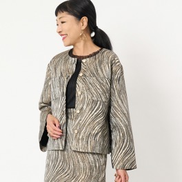 柄が和ぽつくて素敵。ベージュ系です。重さも丁度良いです。重いのは年齢的にきついので。サイズは、いつも11号です。162cm50・。MかLか迷いましたが、Mにしました。袖の長さもピッタリでした。黒のパンツ、ジーンズにも合いそうです。裏付きなので、これからの春には厚いかも?