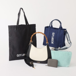 初めてギラロッシュの福袋を購入しましたが5点セットということでお得感はありましたがキャンパス生地のバッグのストラップがバッグと同色または黒系だと無難かなと思いました。またバンブーの取っ手のバッグがレザーだと勝手に判断していたのですが、デニム系の生地なのがやはりテレビではそこまで素材感は伝わるのは難しいと改めて認識しました。なのでトートバッグと財布、モコモコポーチが付いてお得かなと思っています。