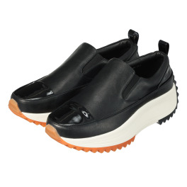 同じ日に販売したオールレザーのスニーカーの白を購入したのでこちらはブラックを購入。サイズ選び悩みました。スリッポンタイプなのでゆるめだと歩き辛いと思い、23か23.5を履く事が多いのですが23を選びました。靴おろしたてに都内まち歩きツアーに参加しましたが痛くなる事もなく靴自体が軽いのと少しつま先上がりなので軽やかに歩けました。しかし靴は実際に履いて選べないので注文から届いて履いてみるまでストレスでした。が、ネットでサイズ選びや靴下合わせなど