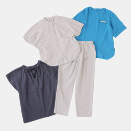 セットの上下のほかに、トップスが2(点。セット上下の素材が、シワにならず、この猛暑にも涼しくて、快適です。