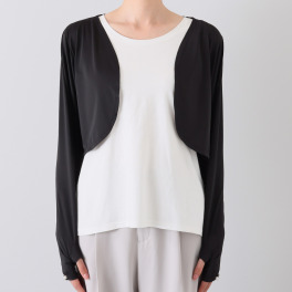 接触冷感で涼しく、短い丈が可愛いらしく気にいってます。袖口のビーズが白で黒のボレロにあいますね・・