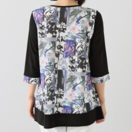 プリントの色が気に入って購入しました、ネイビー系と成っていますが無地の部分はブラックです、プリントにブラックも入っているので別に違和感は無いです、プリントの部分も水彩画の様な所も有り、良かったです。好みの色合いでした。