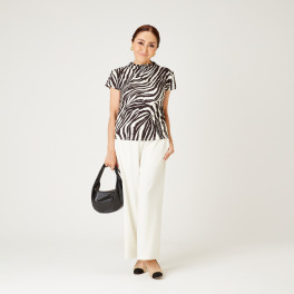サラッとしながらも伸びがある生地感がとても気に入りました。年齢的にあちこちだいぶ柔らかくなった身体のラインも全く拾わない生地感が最高です。デザインは、いっけんとてもシンプルですが、年齢の気になる首も自然にカッコよくカバーしてくれ、胸元からウエストも綺麗な落ち感があるためスッキリ痩せて見せてくれる優秀なトップスでした。
