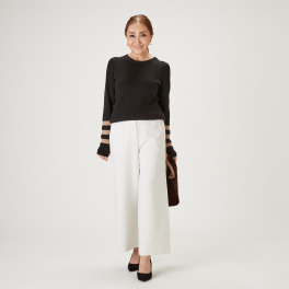 短めなトップスを合わせるとワイド感もスッキリした印象に、脚長効果も