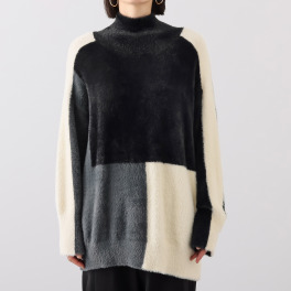 半端無い静電気です。商品を袋から出す時パチパチパチ。商品広げるだけでパチパチ。洗濯外干ししてもパチパチ。それでも静電気防止剤をこれでもかっ!ってかけまくり上着を着て出かけました。上着を脱ぐとこのセーター、ピッタリ体に張り付いてます。160センチ痩せ体型でかなりの余裕でしたが、張り付いてる為綺麗にブロック模様が出ません。残念。
