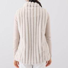 ストライプファーで、とても暖かく、レッキスファーのように滑らかふわふわでベージュのお色も良く、パッと見は満足でしたが・・・。良くみていくにつれテンション下がりました。肩の先が左右非対称であったり、センターラインの前立ちの部分の縫い合せが、上から下まで一本筋のように縫われている部分が表面になっていたり、裁断や縫い合せの問題等雑です。検品しているはずですが残念です。返品はよっぽどの事が無い限りしませんので、今回も返品はしません。このようなデザインだと思う事にします。辛口で御免なさい。デザインが素敵なだけに勿体無いなぁと。
