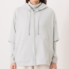 半袖のパーカーという珍しい形が気に入って購入致しました。ドルマンスリーブになっています。肌触りがマシュマロの様でとても気持ちが良いです。普段LLサイズで、L〜LLサイズが中にも長袖を着れる位にゆとりありで良かったです。部屋着、という位置付けなのでしょうか?でも凄く可愛いので、私は外出時でも着ようと思います。
