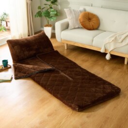 ゴロゴロするのに最高です。足元が全て中に収まり寒さもしのげています。ファスナーの最後が足元に近い為少し雑な収まりになっていたのが残念。あたると、違和感。首元迄閉まるけど、動きが少し大変な時は、胸元迄ファスナー開けています。枕は最高でした。