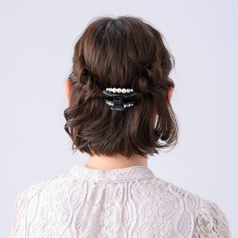 デザートクリップもいただきましたが、こちらのクリップも派手さが無く、シンプルなところが気に入ってます。クリスタルもさり気なくて良いですね〜。黒にパールなので、冠婚葬祭に使わせていただきます。