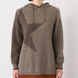 セーターとコーディガンはMでジァストだったから今回はゆったり着てみたかったのでL~LLにしました。肩もドロップショルダーでラインが綺麗、スター柄が大人可愛い、フードで首まわりが暖かいしフチの柄が引き締まりなおおしゃれです。毎年楽しみにしてますのでこのようなデザインをまた作って下さいね。