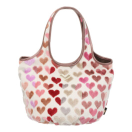 高齢者の私にはちょっと迷ったのですけど持ってみるとそんなことは全然なく(と自分では思っている(笑))あまりの可愛さに気分もあがります。仕切りがないので思ったより荷物はけっこう入りますよ。荷物を入れると丸みがでて形も可愛いですよ。久しぶりにいい買い物ができました。