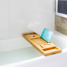 湯船の形が特殊なのでなかなかサイズが合うものが見つけられませんでした。こちらは幅が100センチあるので無事に使うことができました。グラスや携帯等、置けるように溝等があるのでとても使いやすいです。滑り止めもあるので安定感もあります。しっかり水分補給しながらゆっくりとお風呂に入れます。