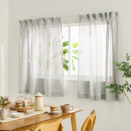 今回は出窓用に丈詰めの必要があったものの133cmを購入。早速丈合わせして掛けましたがさほど暗くなることもなく思い通りでした。遮熱レースカーテンを家の各所に使っていますが、ボタニカル模様入りで白く外がほとんど見えません。正直模様はいらない、外の景色が見たいと思っていたので正に求めていたものでした。できれば100・・213も作っていただけたら家中総取替したいです。これからの猛暑も楽しみです。