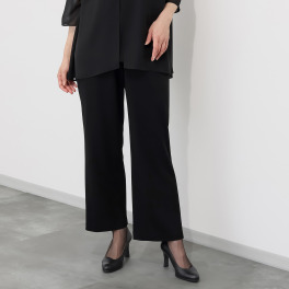 軽くて着やすそうなフォーマルのパンツスーツを探していました。こちらのニットパンツは履き心地が良さそうだったので思いきって注文しました。試着しないで購入するのは不安でしたが、実際に履いて見ると軽くてとても履き心地よかったです。これから長く使用したいと思っています。
