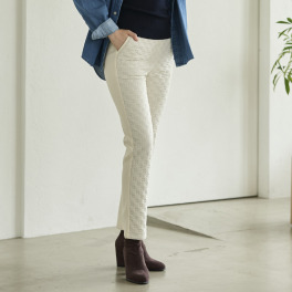 アトリエール 蓄熱保温 マジカルダウン(R) 裏フリース スリムストレートパンツを購入しました。番組後だったのでWebでは白色は既に売り切れていました。同じ商品が出ればホワイトを購入したいと思います。
