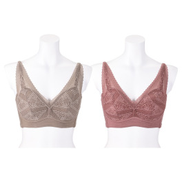 きれいになろう! 制菌加工 綿混ベア天竺 ノンワイヤーレースブラ 2枚セット