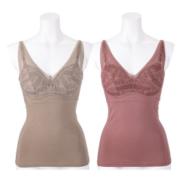 きれいになろう! 制菌加工 綿混ベア天竺 ノンワイヤー レースブラキャミ 2枚セット