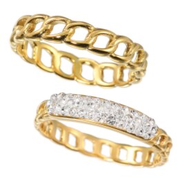 幅違いのチェーンリングで、お手元に抜け感と煌めきを。着け方次第で幅広いスタイリングを楽しめます。