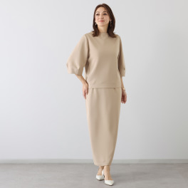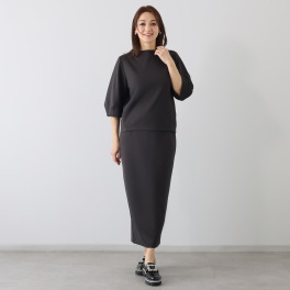 すっきり見えと体形カバーを同時に叶えるトップスときれいなヒップラインを描くスカートのセットアップ。