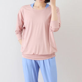 ヨガやスポーツの時にはもちろん普段のちょっとしたお出掛けにも着ていられるデザインになっています。