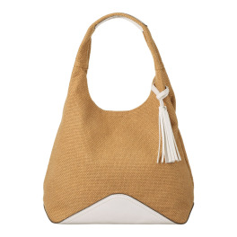 • ラルジュ タッセル付 合成皮革コンビ ハンドバッグ