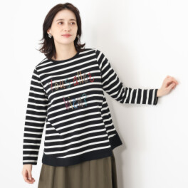 ◎コットン100% 刺しゅうモティーフ ロングスリーブ プルオーバー(ボーダー)
