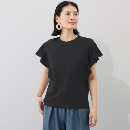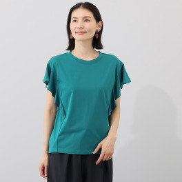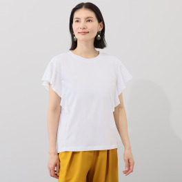 ボン・ブリコラージュ バイ レイコ・ホウセンジ 接触冷感 大人ラッフルがキュート! 二の腕もカバーする デザインTシャツ