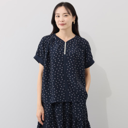 ふんわりシルエットの被り式ブラウス。軽い着心地で、甘辛コーデのどちらも叶い、ついつい手が伸びそうです。