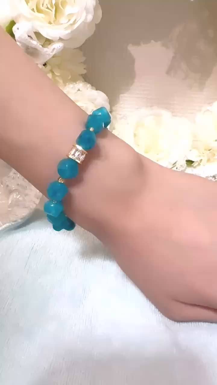 アクアマリン、フローライトブレスレット -