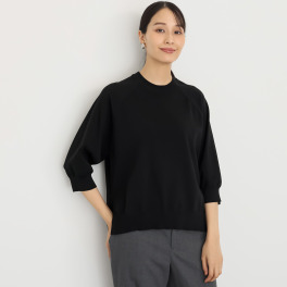 ひじが隠れるほどの袖丈で、ラグランスリーブにより肩まわりも動きやすい。