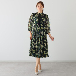タイムレスに愉しめるプリント柄ワンピース。季節的にも、真夏以外の3シーズンにわたって活用可能です。