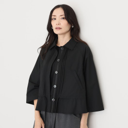 先が広がっている袖は、優雅な見た目と、風通しの良さを両立。裾のドローストリングを引っ張ると、丸み帯びたシルエットになり、甘みが加わります。